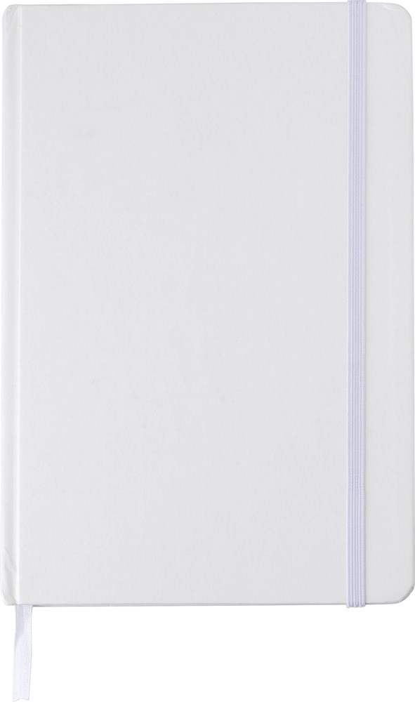 Notizbuch aus recyceltem Karton (A5) mit 160 linierten Seiten. Mit Gummiband zum Verschließen und gleichfarbigem Lesezeichen mit Schleife.