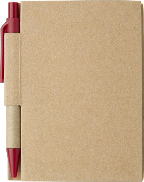 Notizbuch aus Karton mit Ringbindung, 80 linierte Blätter, inklusive Kugelschreiber aus Karton/Kunststoff mit schwarzer Mine.
