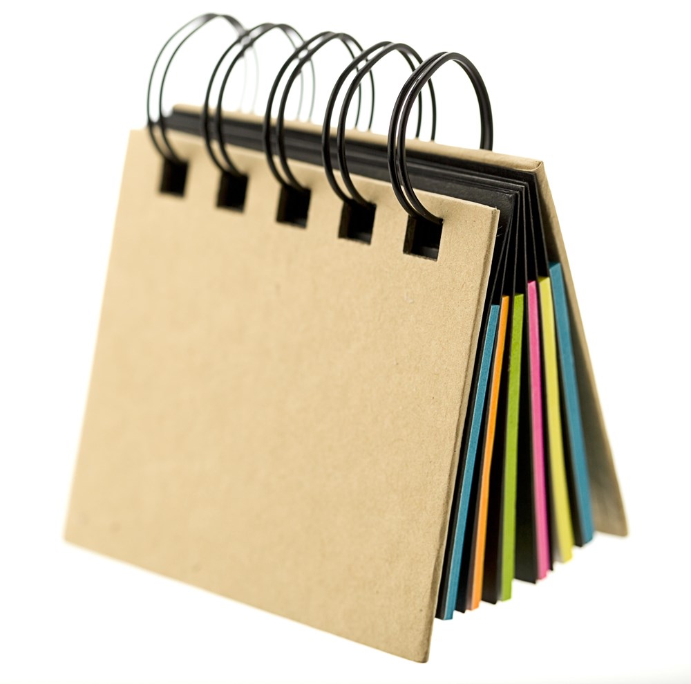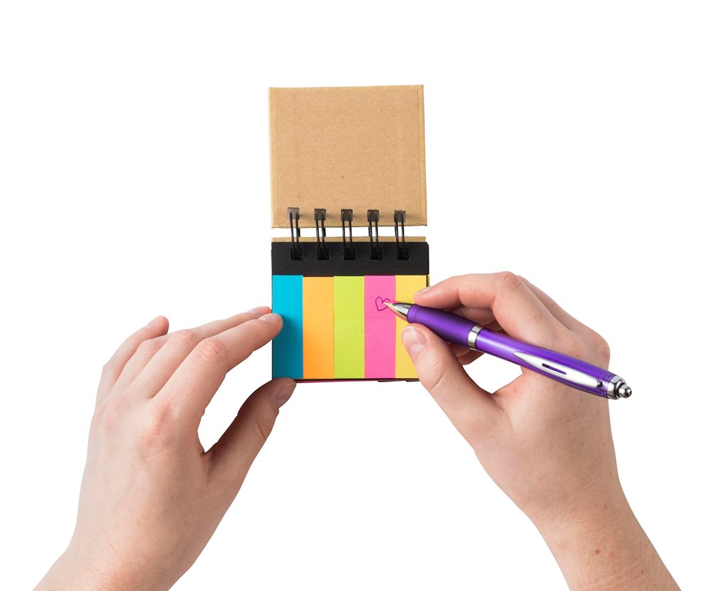 Haftnotizen im Ringbuch, mit 20 Haftnotizstreifen in 5 Farben und 20 Haftnotizzettel im kleinen Format.