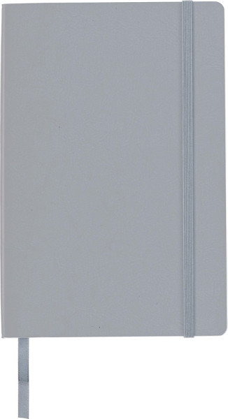 Notizbuch mit PU-Umschlag im DIN A5 Format mit 80 linierten Blättern, Lesezeichen, Fach auf der Innenseite des Umschlags und elastischem Band zum verschließen.