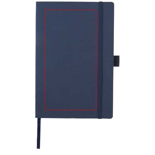 Flexibles Notizbuch mit weichem Einband (A5 Größen-Referenz) mit integriertem Gummiband-Verschluss, Lesezeichen-Bändchen, Stiftschlaufe, Dokumententasche an der inneren Rückseite und 80 Blatt (80 g/m²) cremefarbenem liniertem Papier. Verpackt in einer schwarzen Hülle.