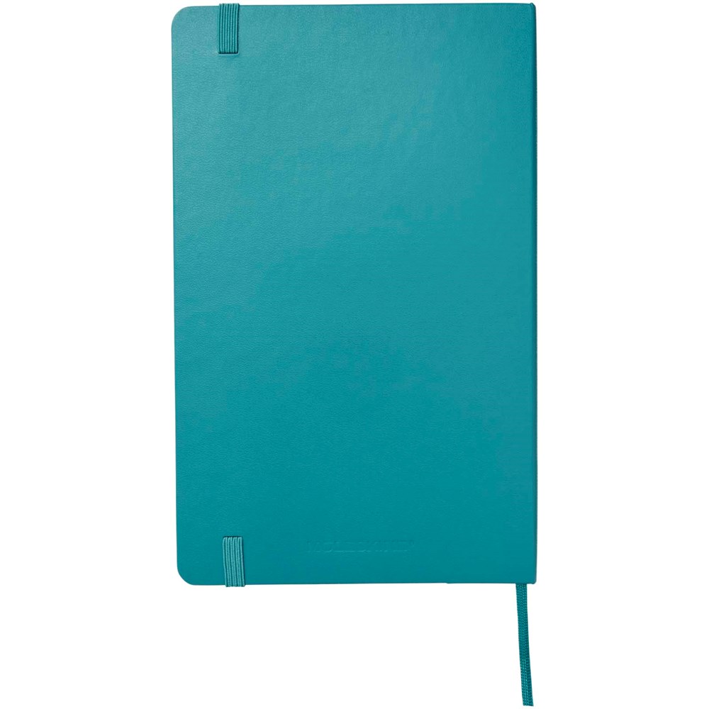 Das Moleskine Classic Hardcover Notizbuch im großen Format (13x21 cm) verfügt über einen kartongebundenen Einband mit abgerundeten Ecken, säurefreiem Papier, einem Lesezeichenband und elastischem Verschluss. Auf der ersten Seite finden Sie Platz für einen Hinweis „bei Verlust“ und zur Belohnung für den Finder. Auf der Rückseite befindet sich eine erweiterbare Innentasche, auf der die Geschichte von Moleskine steht. Die Tasche kann für lose Zettel und Notizen verwendet werden. Enthält 240 elfenbeinfarbene linierte Seiten. Erhältlich in einer großen Auswahl an stilvollen, lebendigen Farben.