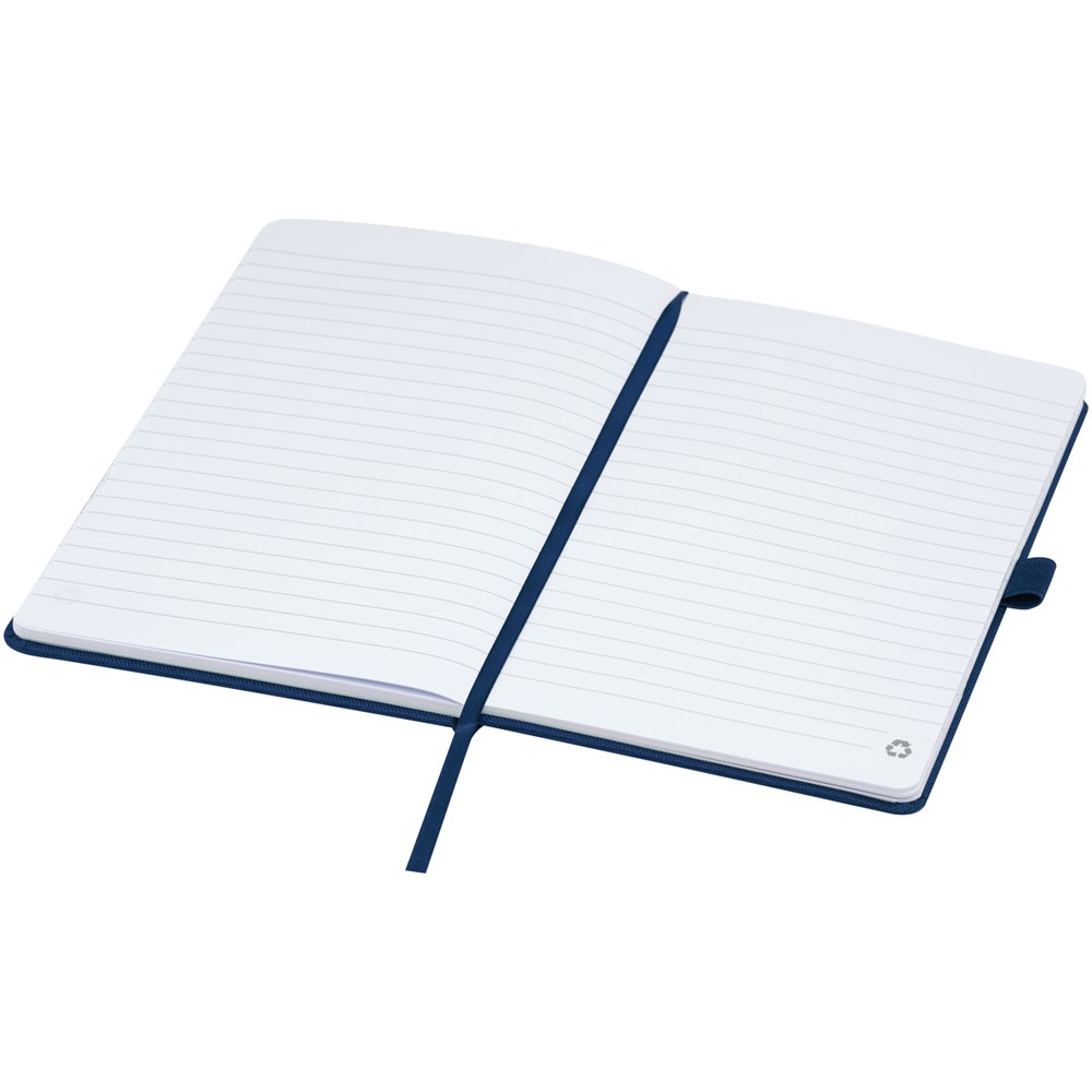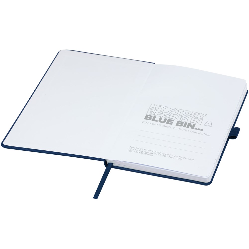 A5 Notizbuch mit einem Cover aus RPET. Mit 80 Blatt, 70 g/m² recyceltem Papier, liniert, und mit Stiftschlaufe und Leseband.