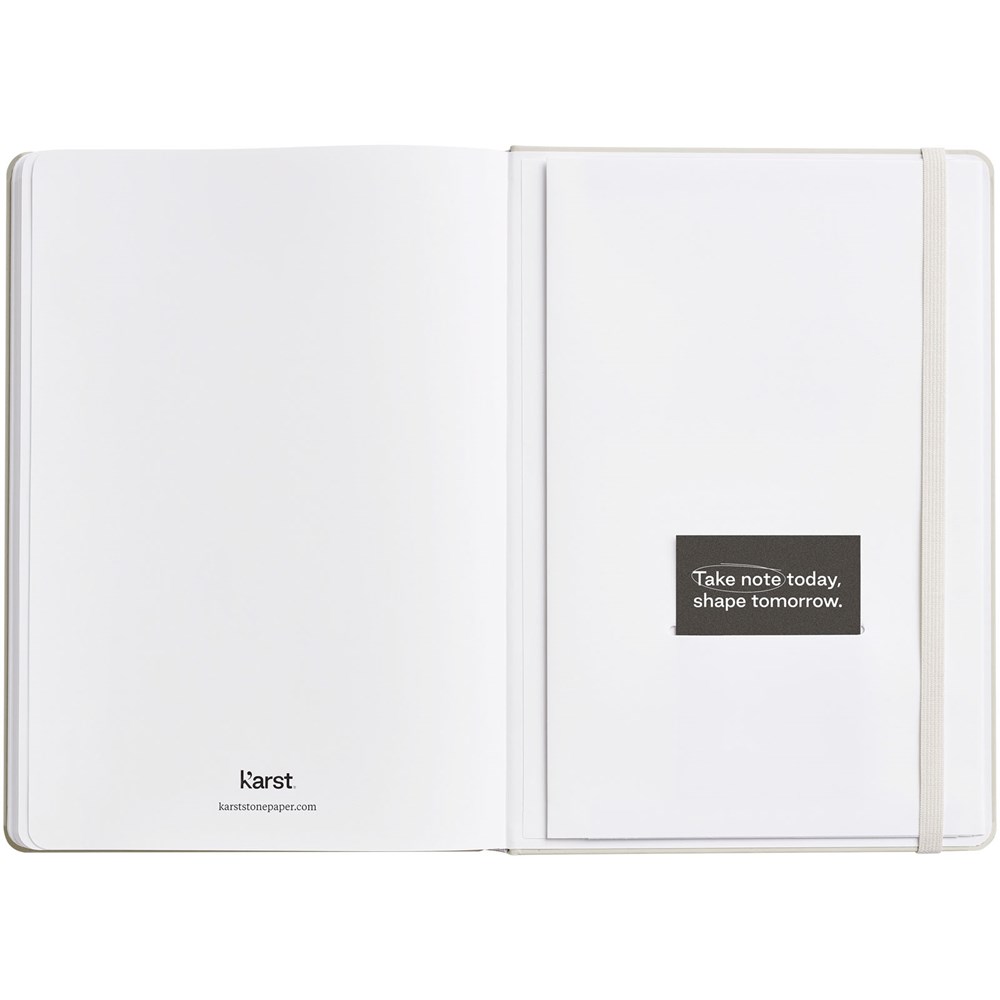 Das Karst® A5 Hardcover-Notizbuch ist ein Bestseller. Die glatte Textur der Seiten und der Einband, mit dem das Buch aufgeschlagen flach liegt, bieten reichlich Komfort und Platz für Ihre Notizen und Ideen. Mit einem Elastikband zum Verschließen des Notizbuchs, 144 wasserfesten, reißfesten, linierten Seiten, einer erweiterbaren Rückentasche zur Aufbewahrung und einem Trennband mit heißgesiegelter Spitze und abgerundeten Ecken.