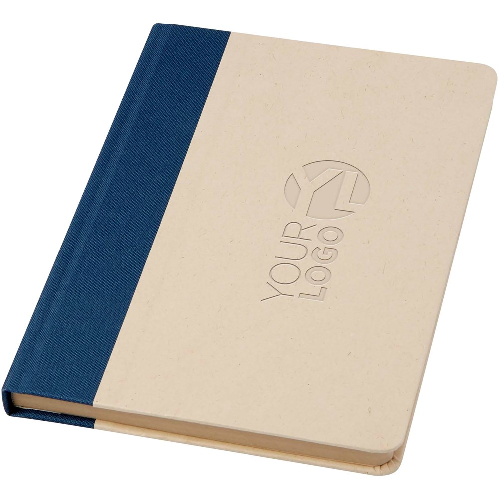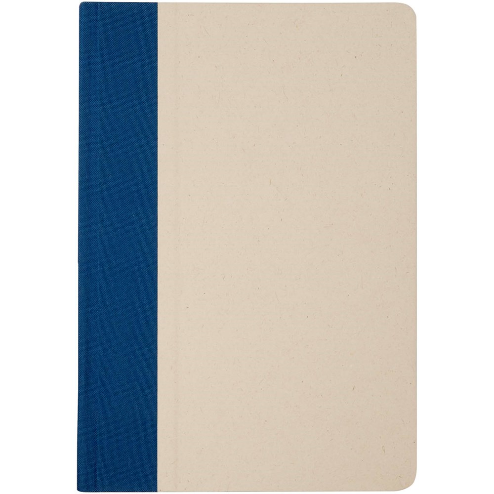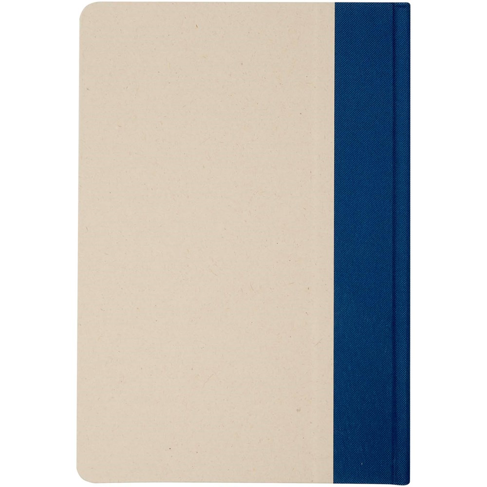 Liliana Hardcover Notizbuch im A5-Format mit abgerundeten Ecken und 80 Blatt liniertem 90 g/m² Papier. Der Einband besteht aus RPET und Zuckerrohrpapier.