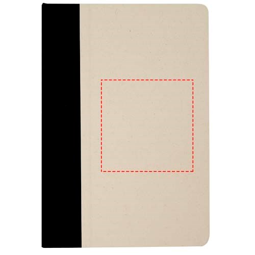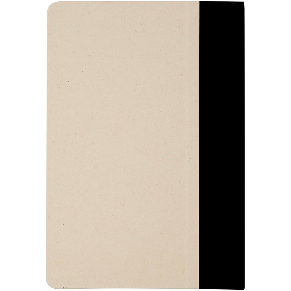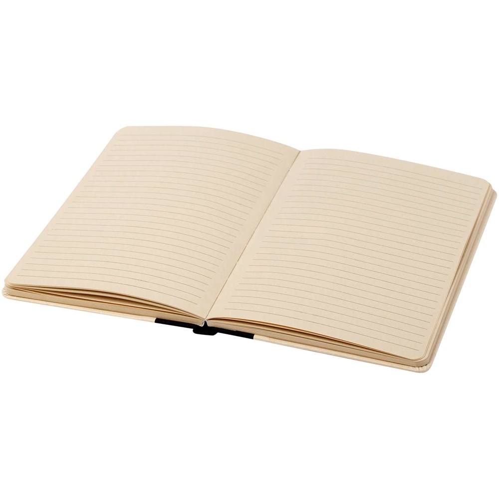 Liliana Hardcover Notizbuch im A5-Format mit abgerundeten Ecken und 80 Blatt liniertem 90 g/m² Papier. Der Einband besteht aus RPET und Zuckerrohrpapier.