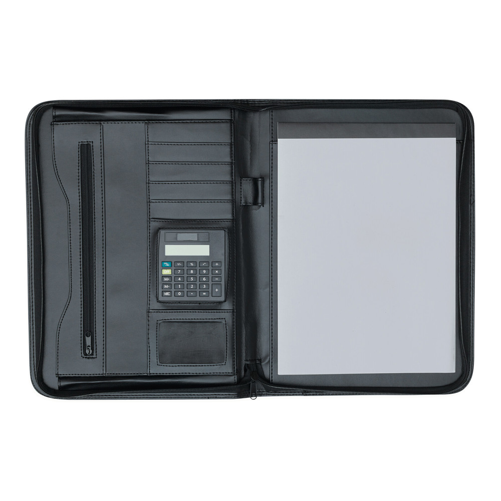 Portfolio GENTLE im DIN-A4-Format: umlaufender Reißverschluss zum Verschließen, innen diverse Einsteckfächer, 1 Klarsichtfach, 1 Reißverschluss-Innenfach, inkl. Schreibblock (blanko), Schlaufe für 1 Schreibgerät, Taschenrechner, außen 1 Einsteckfach