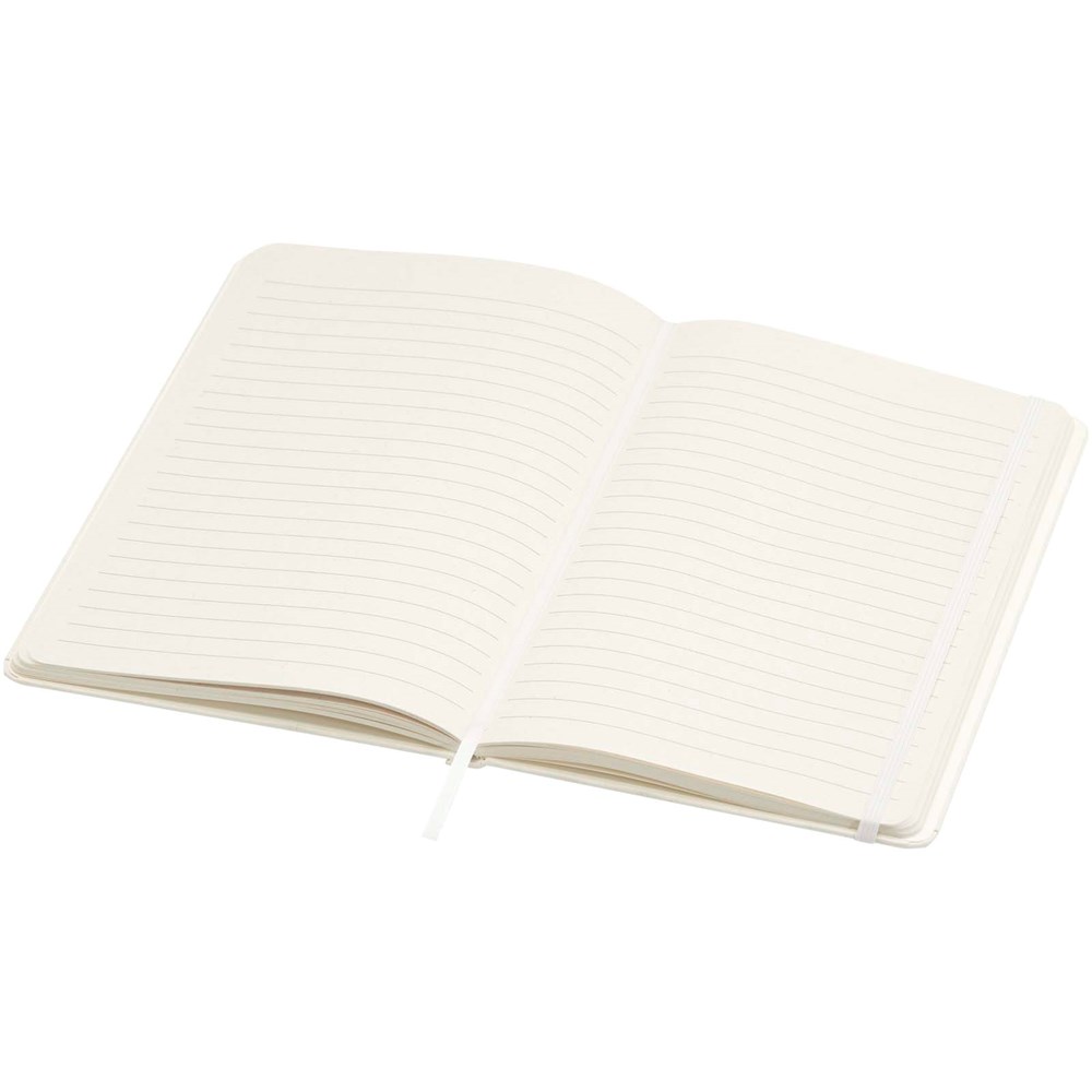 Das Bass A5 Hardcover Notizbuch enthält 80 Blatt, liniert, aus 80 g/m 2 und wird aus recycelten Milchkartons hergestellt.