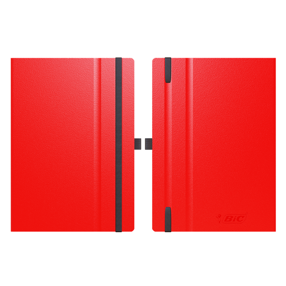 Das BIC® Partner A5 Hardcover-Notizbuch mit linierten Seiten hat einen speziellen Einband, der gleichzeitig Stabilität und Flexibilität vereint und ein einfaches seitliches Einsehen eines Teils der Innenseiten ermöglicht, ohne es vollständig öffnen zu müssen. Dieses Notizbuch wird zu einem zuverlässigen Reisebegleiter, perfekt zum Schreiben, Festhalten von Gedanken und Aufschreiben von Notizen. Alle BIC-Notizbücher werden in Italien aus FSC-zertifiziertem Papier hergestellt.