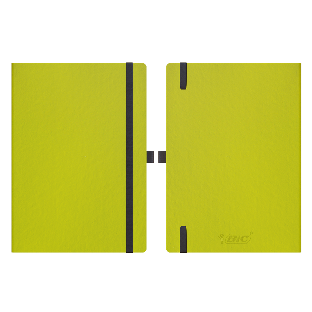 Das BIC® Partner A5 FruitCover-Notizbuch mit linierten Seiten aus Recyclingmaterial hat einen Umschlag, der nicht nur anpassungsfähig und widerstandsfähig ist, sondern auch zu 39 % aus Apfelabfällen besteht. Dieses Notizbuch hat die perfekte Größe, um es überallhin mitzunehmen, und ist ein zuverlässiger Reisebegleiter, ideal zum Schreiben, Festhalten von Gedanken und Aufschreiben von Notizen. Alle BIC-Notizbücher werden in Italien aus FSC-Papier hergestellt.
