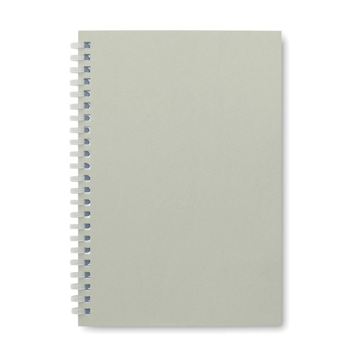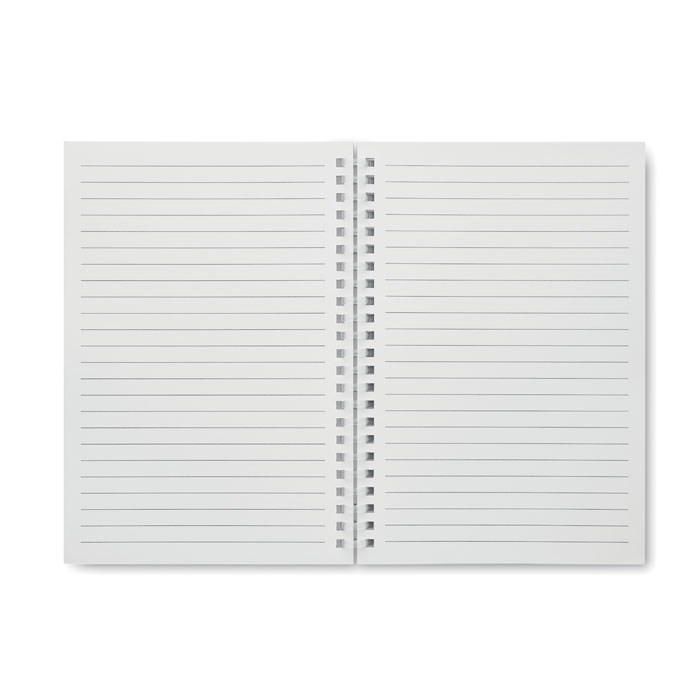 DIN A5 Notizbuch mit Cover aus recyceltem Karton. Weiche Kunststoff-Ringbindung. 80 Blatt (160 Seiten) liniertes Recyclingpapier. FSC®-certified | FSC MIX CREDIT, P7.1, FSC-C213206