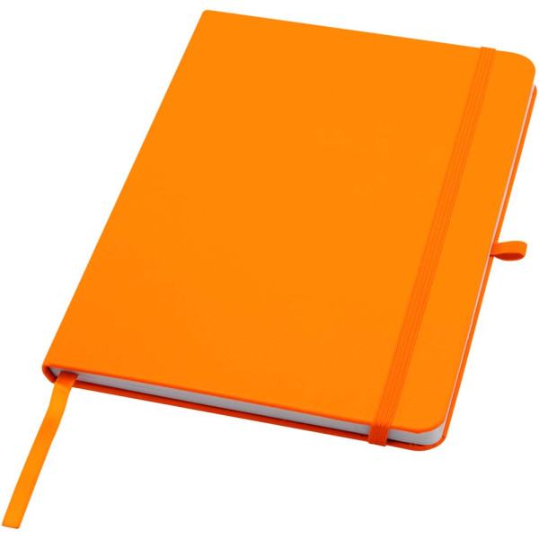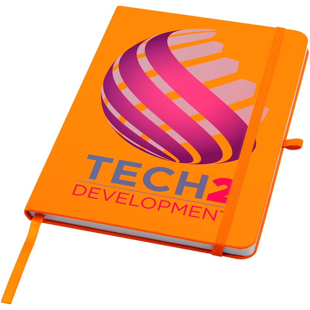 Das Teak A5 Hardcover Notizbuch aus Recyclingkarton mit abgerundeten Ecken ist nicht nur ein unentbehrlicher Bürohelfer, sondern auch eine großartige Möglichkeit, für Ihre Marke zu werben. Das Notizbuch umfasst 96, Blatt, liniert, aus 70 g/m 2 Papier mit einem weichen Einband. Mit Stiftschlaufe, elastischem Verschluss und Lesebändchen.