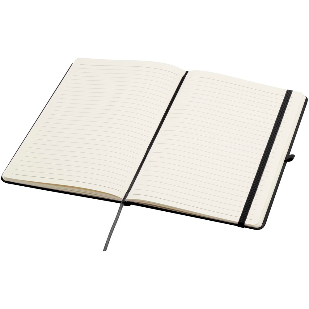 Das Spectrum Plus A5 Hardcover Notizbuch mit abgerundeten Ecken ist nicht nur ein unentbehrlicher Begleiter im Büro, sondern auch ein hervorragender Weg, um für Ihre Marke zu werben. Das Notizbuch aus Karton mit weichem Einband und 80 linierten, cremefarbenen Seiten (70 g/m²) eignet sich ideal für schnelle Ideen oder längere Notizen. Das Notizbuch ist mit Stiftschlaufe, elastischem Verschluss, Lesebändchen und erweiterbarrter Tasche ausgestattet.