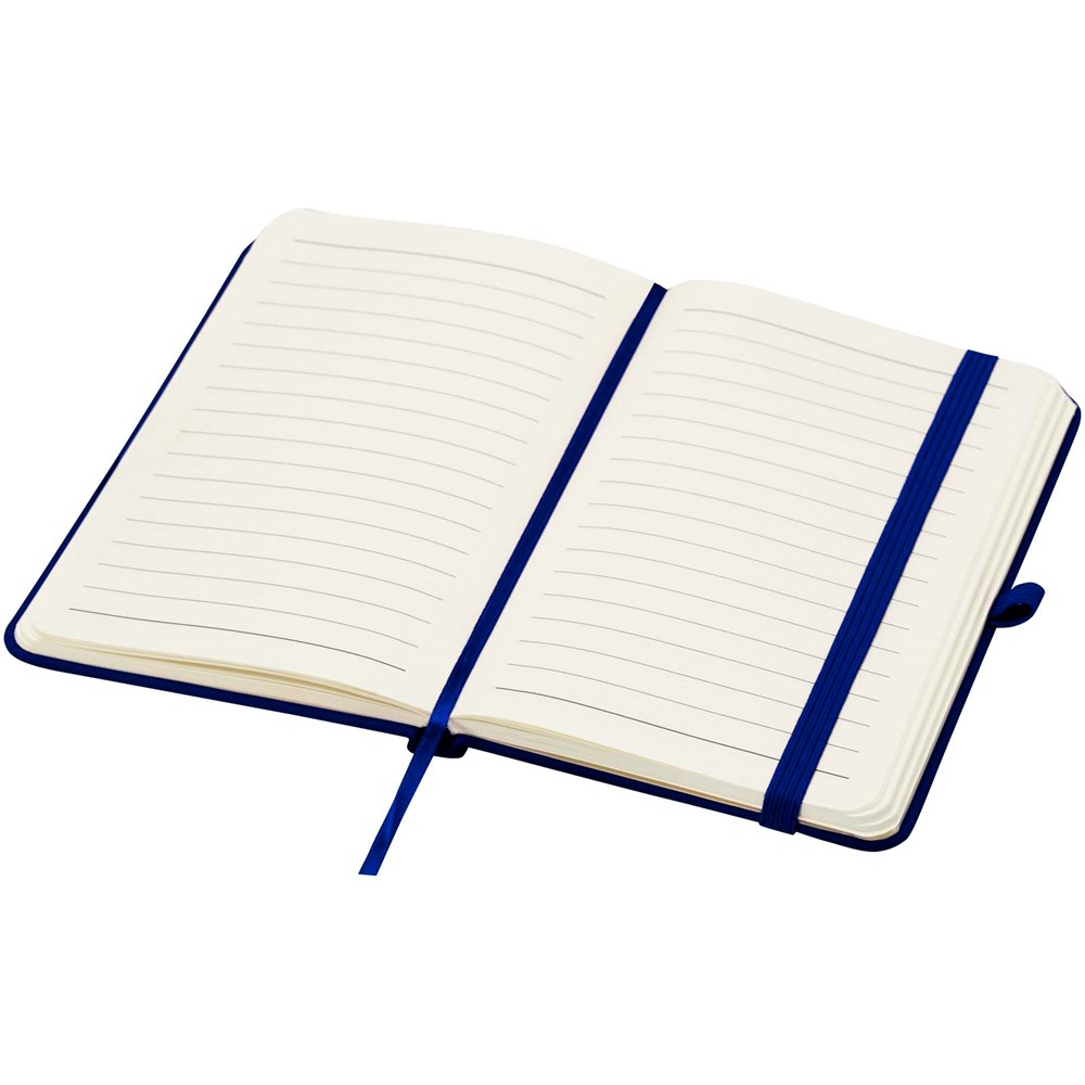 Das Spectrum Plus A6 Hardcover Notizbuch mit abgerundeten Ecken ist nicht nur ein unentbehrlicher Begleiter im Büro, sondern auch ein hervorragender Weg, um für Ihre Marke zu werben. Das Notizbuch aus Karton mit weichem Einband und 80 linierten, cremefarbenen Seiten (70 g/m²) eignet sich ideal für schnelle Ideen oder längere Notizen. Das Notizbuch ist mit Stiftschlaufe, elastischem Verschluss, Lesebändchen und erweiterbarer Tasche ausgestattet.