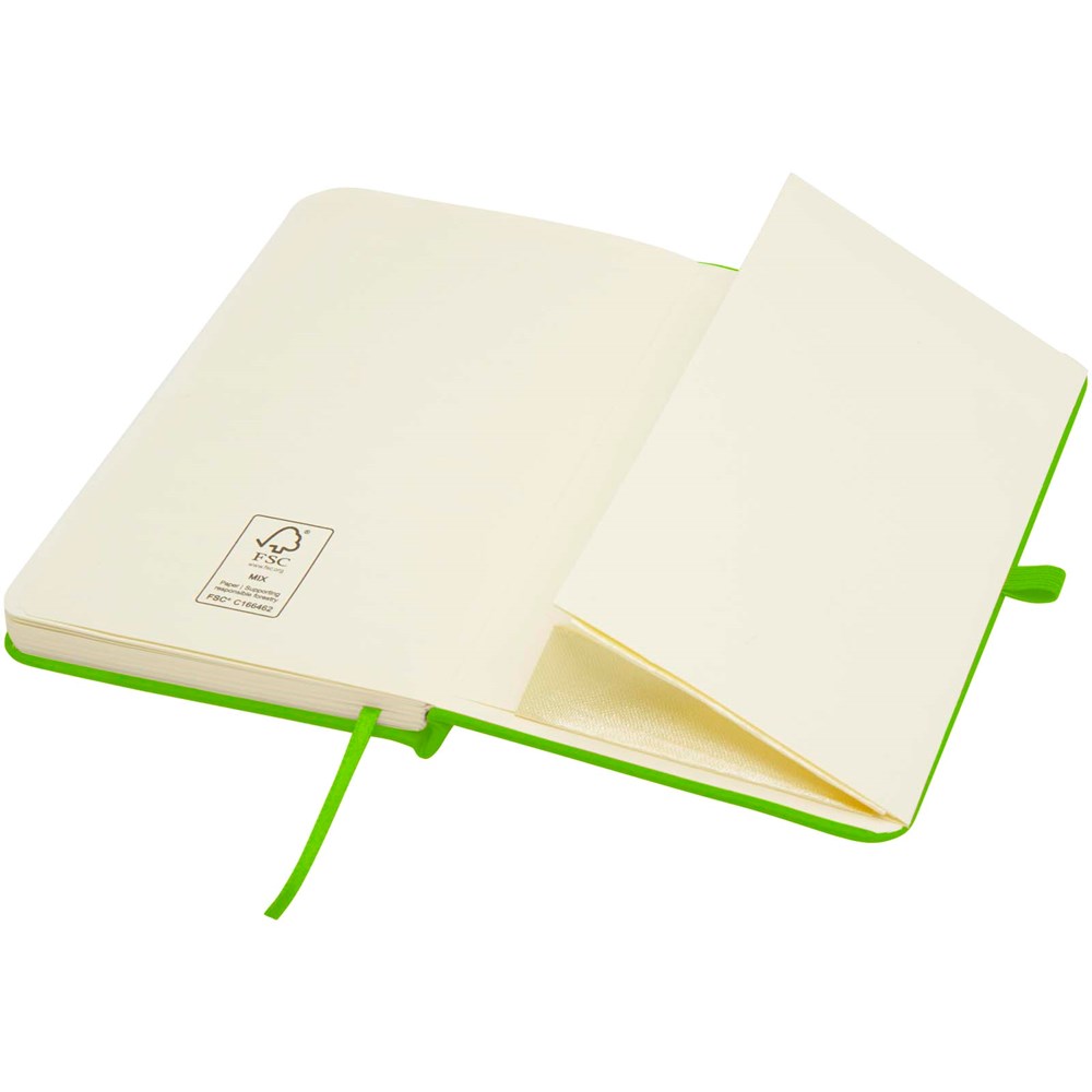Das Spectrum Plus A6 Hardcover Notizbuch mit abgerundeten Ecken ist nicht nur ein unentbehrlicher Begleiter im Büro, sondern auch ein hervorragender Weg, um für Ihre Marke zu werben. Das Notizbuch aus Karton mit weichem Einband und 80 linierten, cremefarbenen Seiten (70 g/m²) eignet sich ideal für schnelle Ideen oder längere Notizen. Das Notizbuch ist mit Stiftschlaufe, elastischem Verschluss, Lesebändchen und erweiterbarer Tasche ausgestattet.