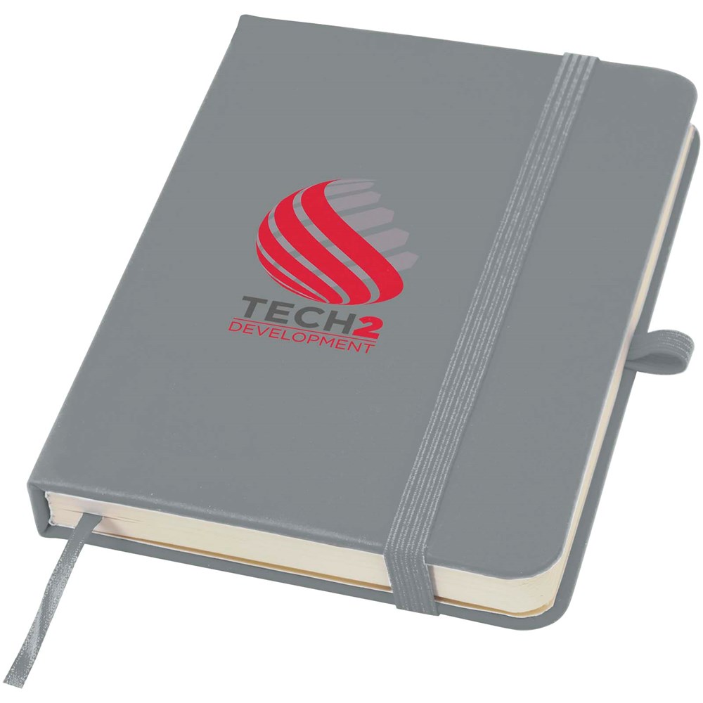 Das Spectrum Plus A6 Hardcover Notizbuch mit abgerundeten Ecken ist nicht nur ein unentbehrlicher Begleiter im Büro, sondern auch ein hervorragender Weg, um für Ihre Marke zu werben. Das Notizbuch aus Karton mit weichem Einband und 80 linierten, cremefarbenen Seiten (70 g/m²) eignet sich ideal für schnelle Ideen oder längere Notizen. Das Notizbuch ist mit Stiftschlaufe, elastischem Verschluss, Lesebändchen und erweiterbarer Tasche ausgestattet.