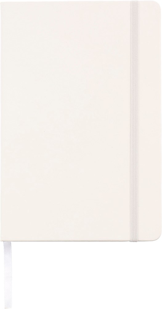 Notizbuch aus PU (ca. A5) mit 96 karierten Seiten im 5 mm Raster ohne Rahmen. Mit Lesebändchen und Gummizug am Einband.