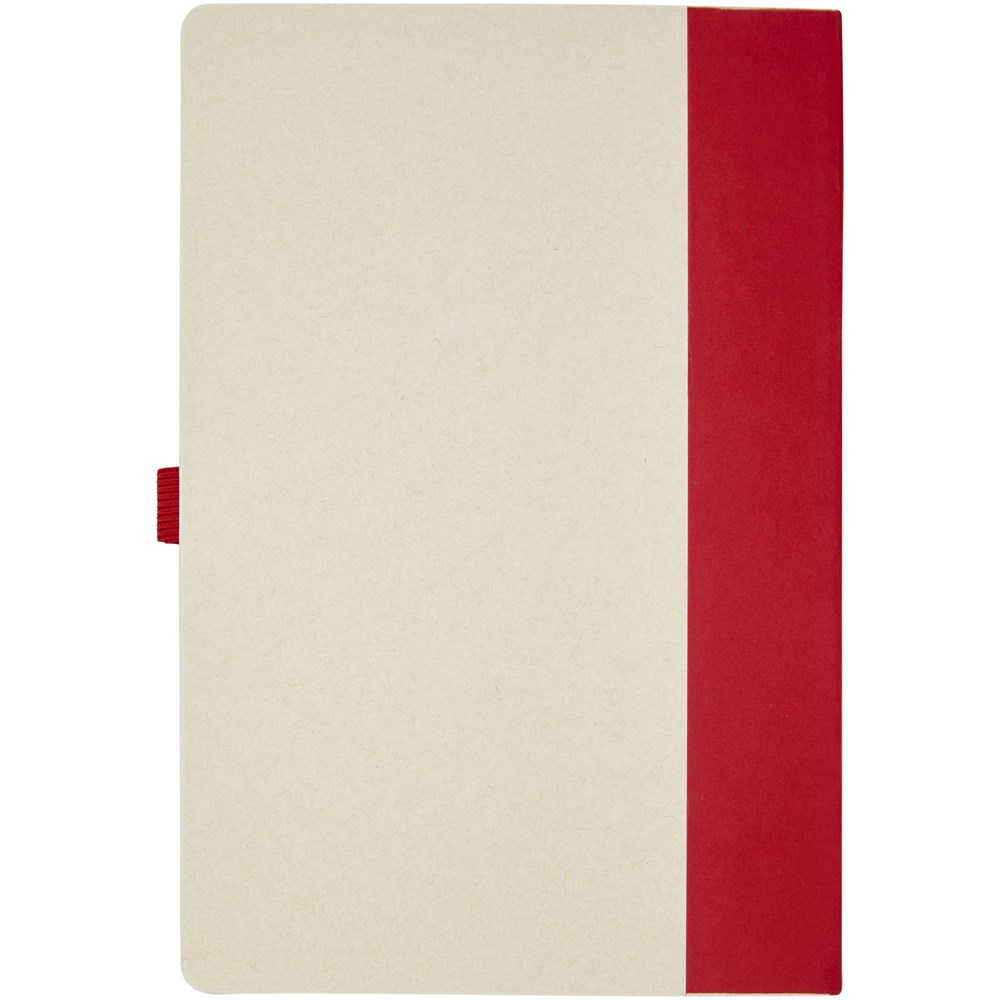 A5 Notizbuch und Kugelschreiber-Set. Das Notizbuch besteht aus 80 linierten Seiten (80 g/m²), hergestellt aus recycelten Milchtüten (bis zu 70 %), einem farbigen Papierrücken und einer Stiftschlaufe. In der Stiftschlaufe befindet sich ein Kugelschreiber mit Druckmechanik in der gleichen Farbe wie das Notizbuch. Der Stift hat einen Schaft aus demselben recycelten Milchtütenmaterial, und der Druckknopf, der Clip und die Spitze sind aus farbigem PLA-Kunststoff gefertigt. Der Kugelschreiber ist mit einer schwarzen Mine ausgestattet. Gebrauchte Milchtüten werden gesammelt, sortiert, verarbeitet und in Papier umgewandelt, sodass aus Abfall wirklich etwas Nützliches wird.