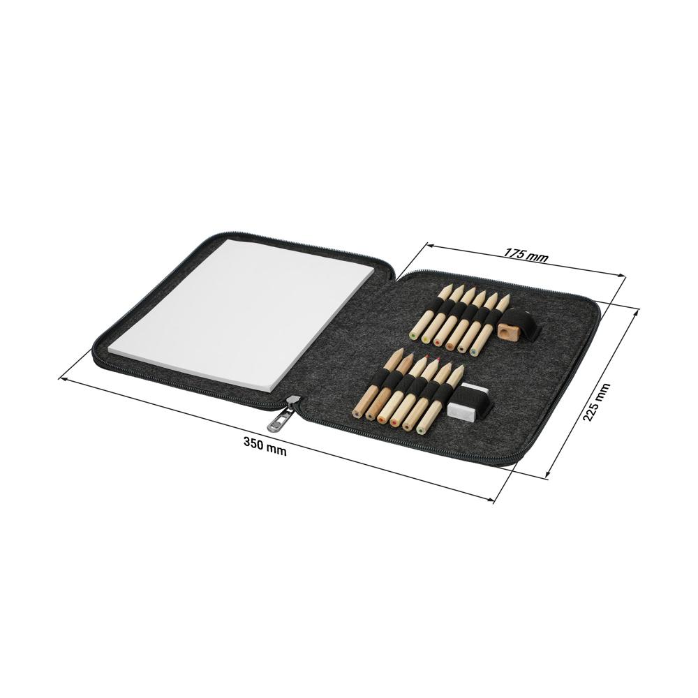 Das Kindermalmäppchen "Fantasia" bringt Kreativität und Ordnung zusammen! Aus hochwertigem Filz gefertigt, bietet es mit einer Größe von 22 x 17 cm genügend Platz für alle Malutensilien. Das Set enthält einen Malblock, kleine Stifte, einen Radiergummi und einen Spitzer – alles griffbereit für kleine Künstler. Ideal für unterwegs oder zu Hause, sorgt es für endlosen Malspaß und Ordnung zugleich!