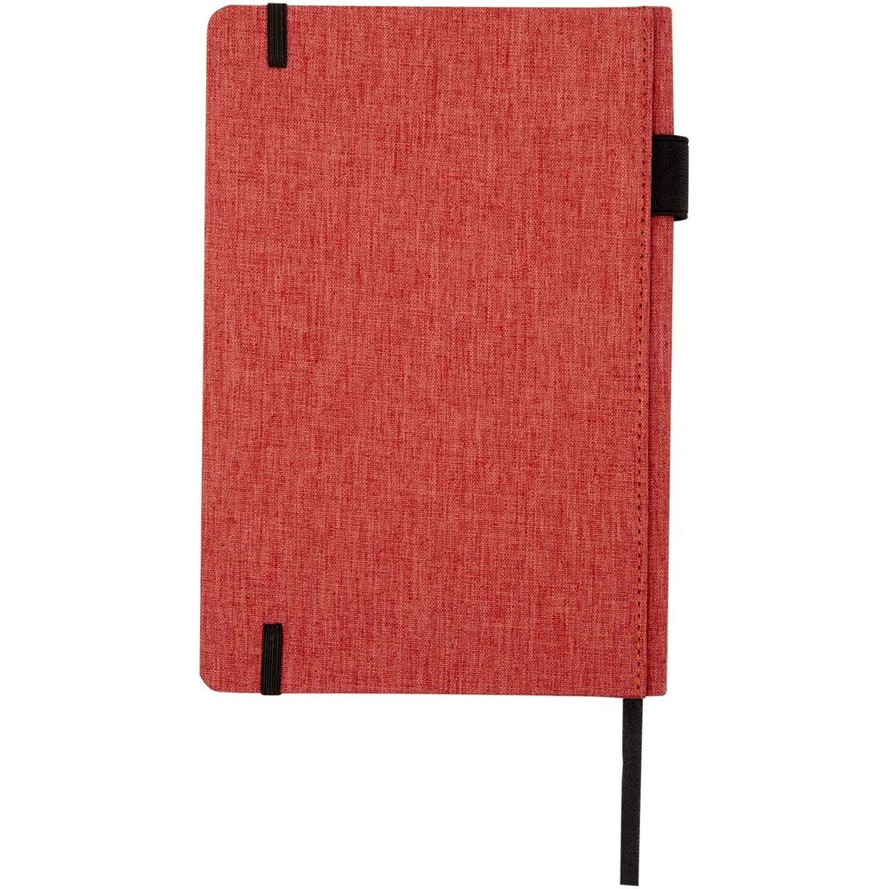 A5 Notizbuch mit einem Cover aus RPET-Stoff. Mit 96 Blatt, 70 g/m² recyceltes Papier mit liniertem Layout, Stiftschlaufe und Leseband. Verpackt in einer Kartonhülle.