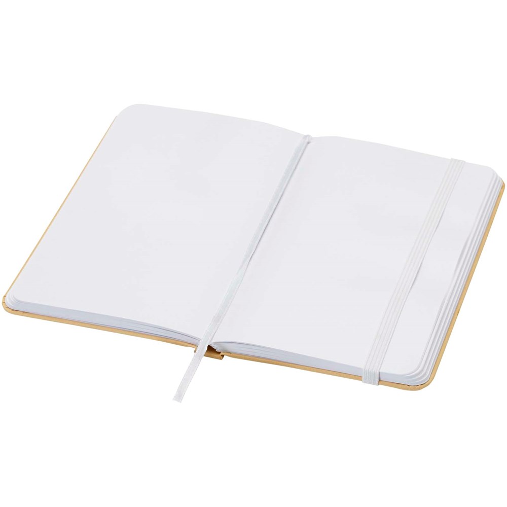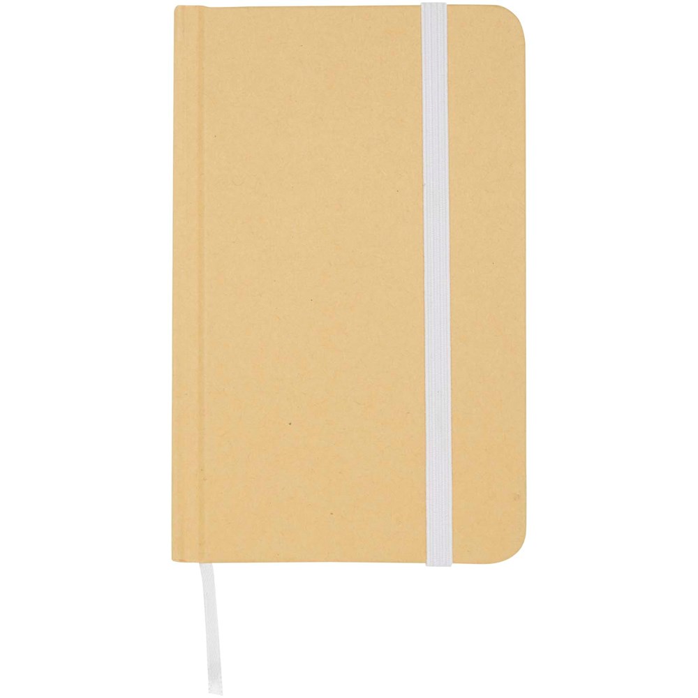 Das Reed A6 Hardcover Notizbuch aus Recyclingkarton mit abgerundeten Ecken ist nicht nur ein unentbehrlicher Bürohelfer, sondern auch eine großartige Möglichkeit, für Ihre Marke zu werben. Das Notizbuch umfasst 96 Blatt, blanko, aus 70 g/m 2 Papier mit einem weichen Einband. Mit elastischem Verschluss und Lesebändchen.