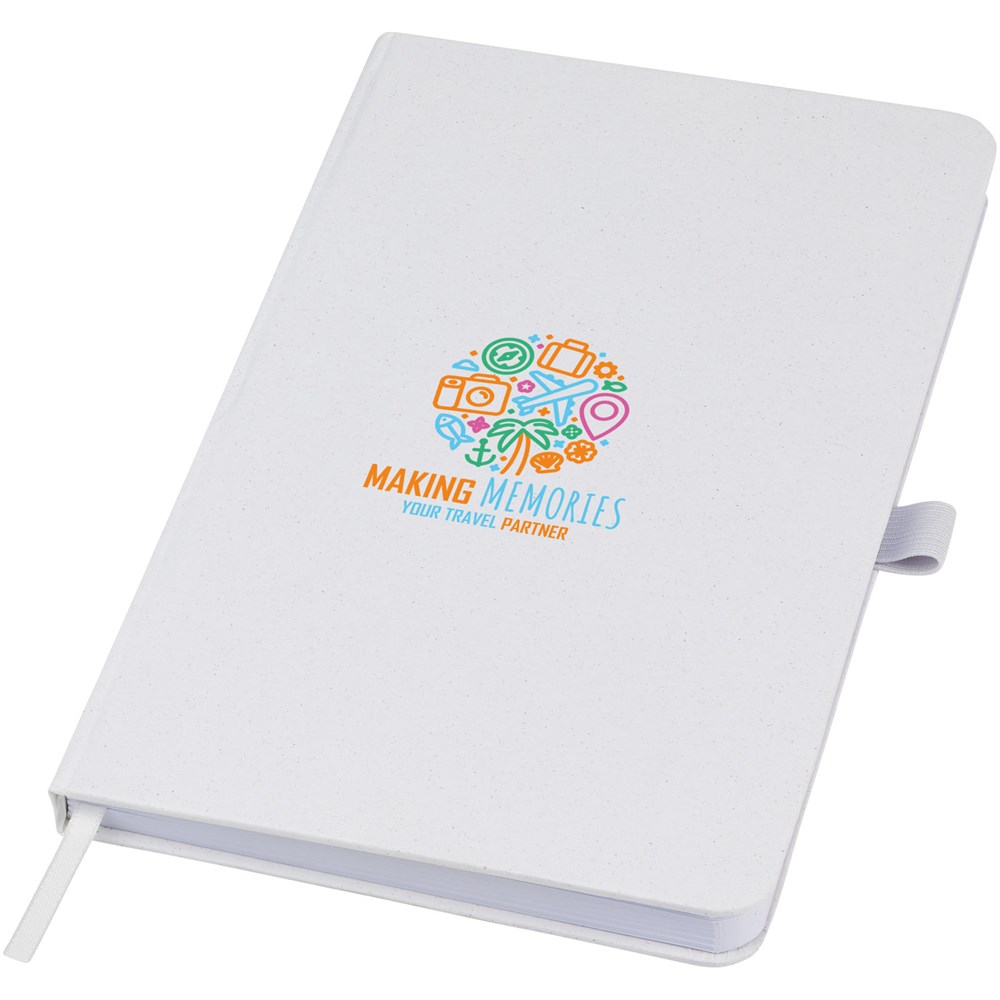 Leichtes Hardcover Notizbuch für alltägliche Notizen und einem Cover aus verantwortungsvoll erzeugten Materialien. Das braune Cover enthält Kaffeereste, das grüne Cover enthält Olivenreste und das weiße Cover Maisreste. Mit 80 Blatt (70 g/m²) weißem, liniertem Recyclingpapier.