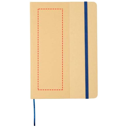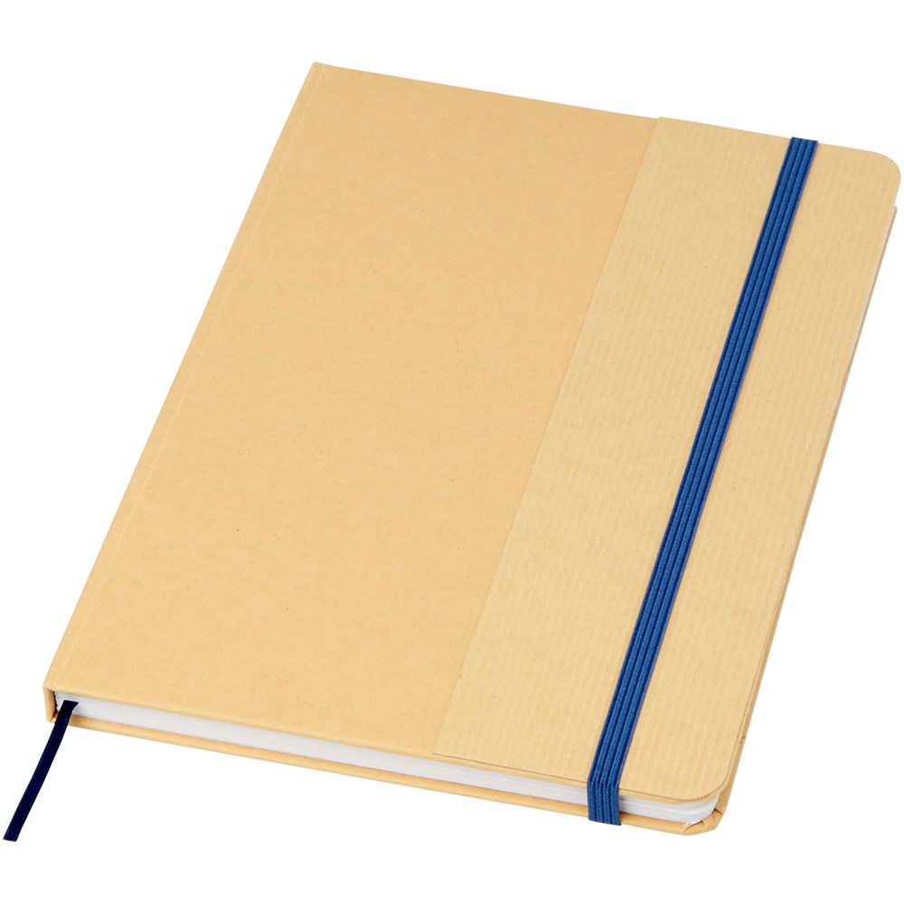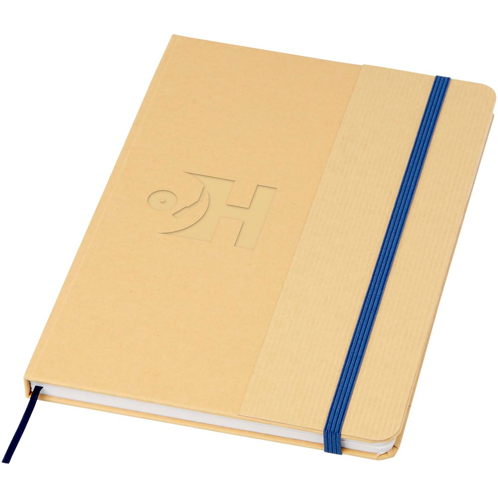 Hardcover Notizbuch im Format A5 aus recyceltem Karton mit 80 Blatt liniertem 70 g/m² Papier. Das Notizbuch hat einen elastischen Verschluss, ein Lesebändchen und abgerundete Ecken.