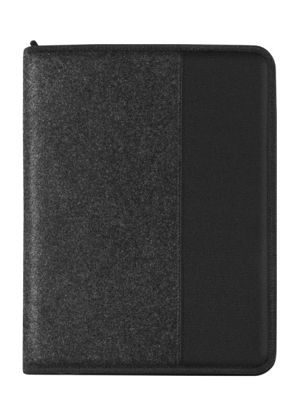 Praktische EconomyPlus-Schreibmappe mit umlaufendem Reißverschluss im Filz-Look. DIN A4 Format, VPE 20. Blatt- und Reißverschlussfach,9 Kartenfächer, Tablet-Halterung, Business-Block, Stiftehalter
