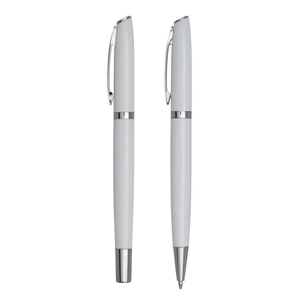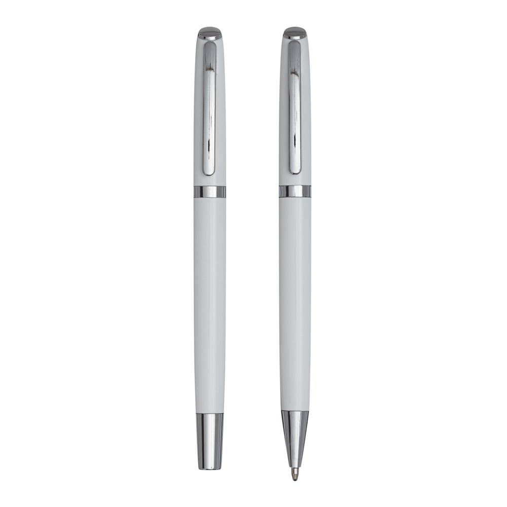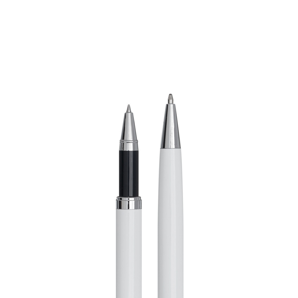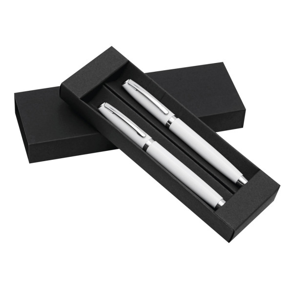 Schreibset ALPHABET, 2-teilig: bestehend aus Kugelschreiber mit Drehmechanismus (schwarzschreibend) sowie Tintenroller mit Verschlusskappe mit Clip (schwarzschreibend), beide Schreibgeräte mit Aluminium-Schaft, in Box