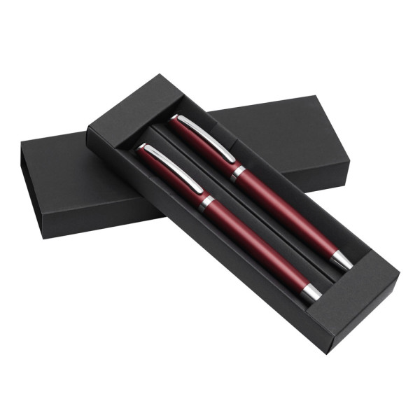 Schreibset ALPHABET, 2-teilig: bestehend aus Kugelschreiber mit Drehmechanismus (schwarzschreibend) sowie Tintenroller mit Verschlusskappe mit Clip (schwarzschreibend), beide Schreibgeräte mit Aluminium-Schaft, in Box