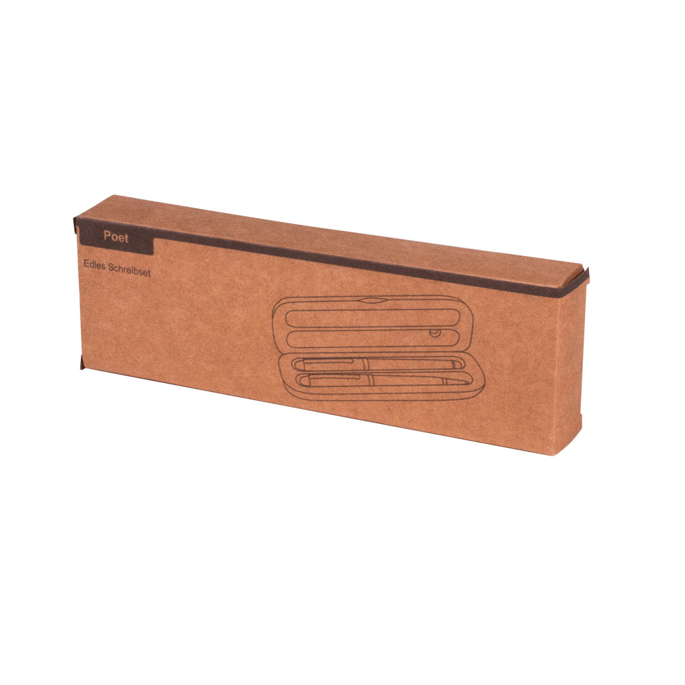 Edles Schreibset POET, 2-teilig: bestehend aus Kugelschreiber mit Drehmechanismus (blauschreibend) sowie Füllfederhalter mit Verschlusskappe mit Clip, Iridium-Point-Feder, inkl. 1 Tintenpatrone, beide Schreibgeräte mit Holz-Schaft und goldglänzendem Dekor, im Holzetui