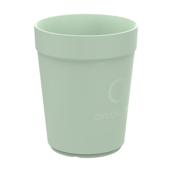 iederverwendbarer, stapelbarer Becher der Marke Circulware. Dieser Becher ist aus hochwertigem Kunststoff hergestellt und kann bis zu 500 Mal verwendet werden. Geeignet für einen heißen Kaffee, ein Erfrischungsgetränk oder ein Eis. Eine großartige Alternative zum Einwegbecher. Der Becher ist leicht, einfach zu reinigen und stapelbar, also platzsparend. Für Lebensmittel zugelassen. Spülmaschinengeeignet und mikrowellengeeignet. 100% recycelbar. Damit leistet dieser Becher einen Beitrag zur Kreislaufwirtschaft. Niederländisches Design. Made in Holland. Fassungsvermögen: 300 ml.