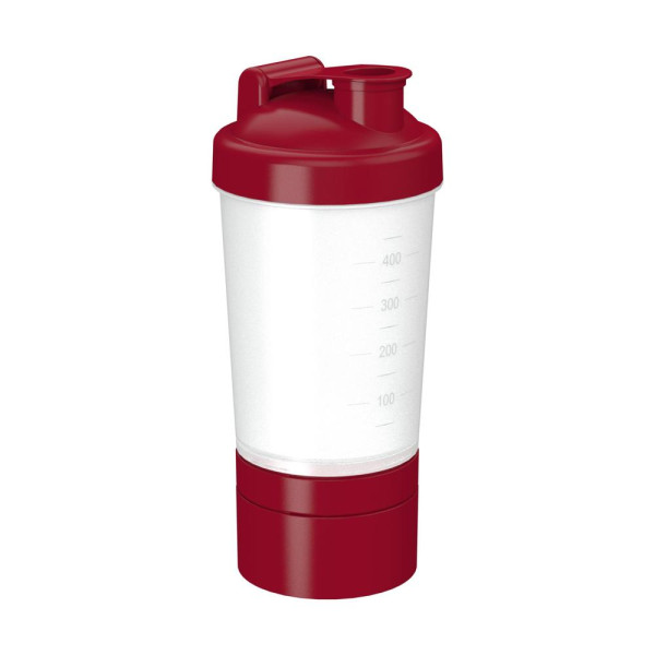 Shake it up! Ideal für den Eiweiß-Shake nach dem Training. Dieser modulare Shaker mit geprägter Skala in 50 ml Schritten und Schraubdeckel mit verschließbarer Trinköffnung beinhaltet ein herausnehmbares Sieb, mit dem sich Shakepulver und Flüssigkeit bei gutem Schütteln optimal vermischen. Zusätzlich verfügt dieser Shaker über zwei abnehmbare Kammern, welche sich separat befüllen lassen. Der Mix-Becher lässt sich komplett auseinandernehmen und somit leicht reinigen. Füllmenge (Shaker ohne Zusatzfächer): 0,4 Liter.