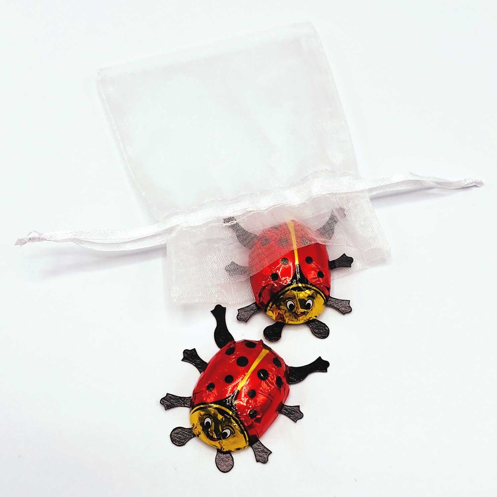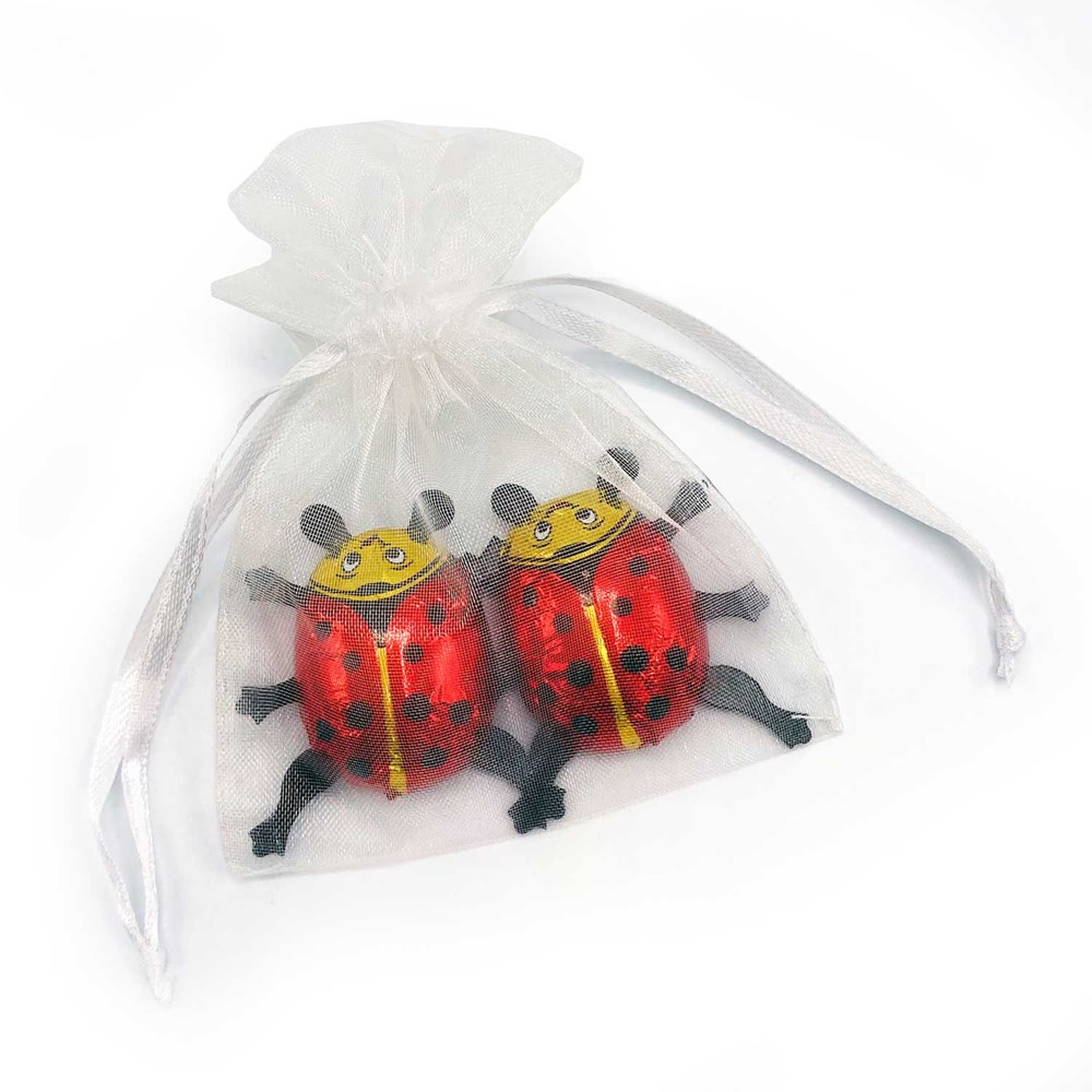 Unser Organzasäckchen GOOD LUCK ist vielseitig einsetzbar und trifft jeden Geschmacksnerv! Zwei Edelvollmilch Schokoladen Glückskäfer aus dem Hause Heilemann sorgen für eine süße Aufmerksamkeit, welche ganzjährig einsetzbar ist. Eine Werbebotschaft ist mittels Kärtchen möglich und kann individuell nach Ihren Wünschen gestaltet werden.