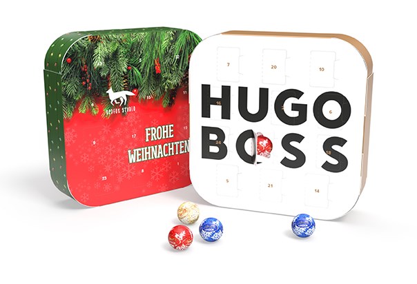 Modern, kreativ, genussvoll: Der APPventskalender im innovativen App-Design zum Aufstellen ist gefüllt mit 24 Lindt Lindor Mini Kugeln in Vollmilch, Zartbitter und weißer Schokolade. Produziert aus FSC-zertifiziertem Papier und individuell veredelbar – für digitale Werbebotschaften zum Anfassen.