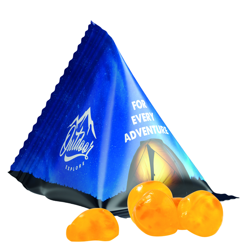 Fruchtgummi Tetraeder, Folie weiß, Trolli Vitamin Fruchtgummi