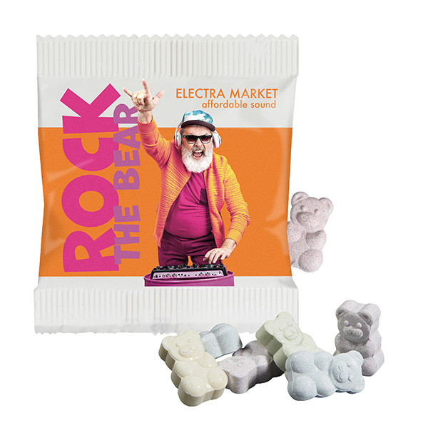 Ahoj-Brause Super-Bären prickeln jetzt auch mit Mineralstoffen (Calcium, Magnesium und Zink), Vitamin C und Traubenzucker. In den brausenden Geschmacksrichtungen Banane, Waldmeister, Kirsche und Blaubeere ist der Super-Bär Dein starker Begleiter für jeden Tag! In weißem Papierwerbetütchen verpackt.