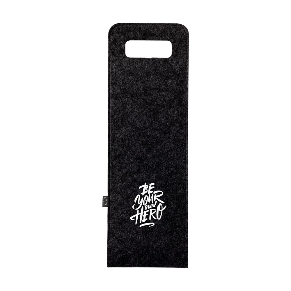Trendiger Weinflaschenhalter aus RPET-Filz. Diese Wein-Geschenkverpackung bietet Platz für eine Flasche Wein (nicht im Lieferumfang enthalten) mit einem Durchmesser von ca. 7,5 cm. GRS-zertifiziert. Recyceltes Material insgesamt: 95%.
