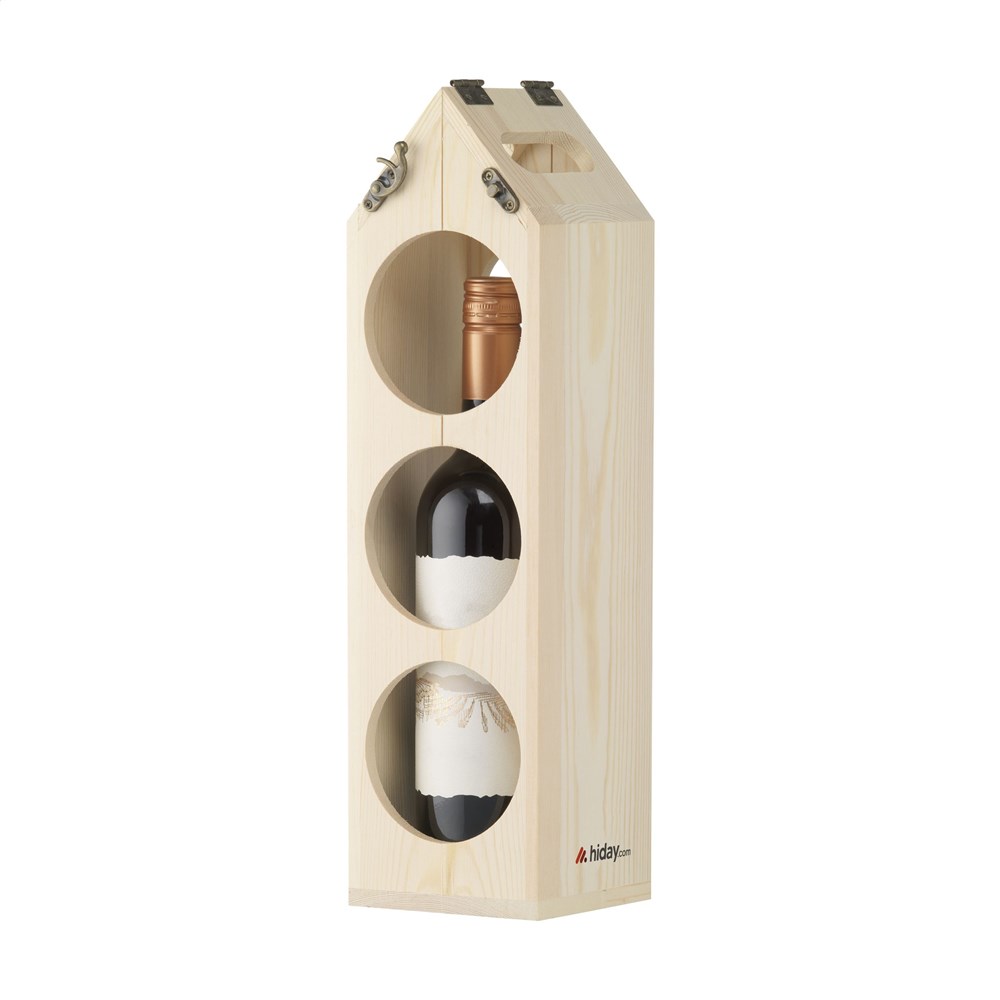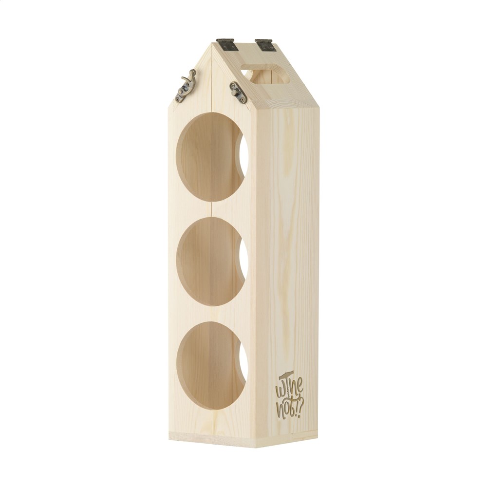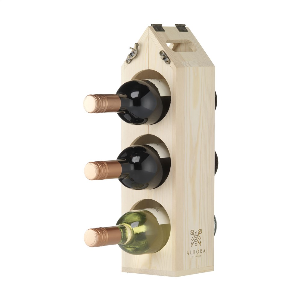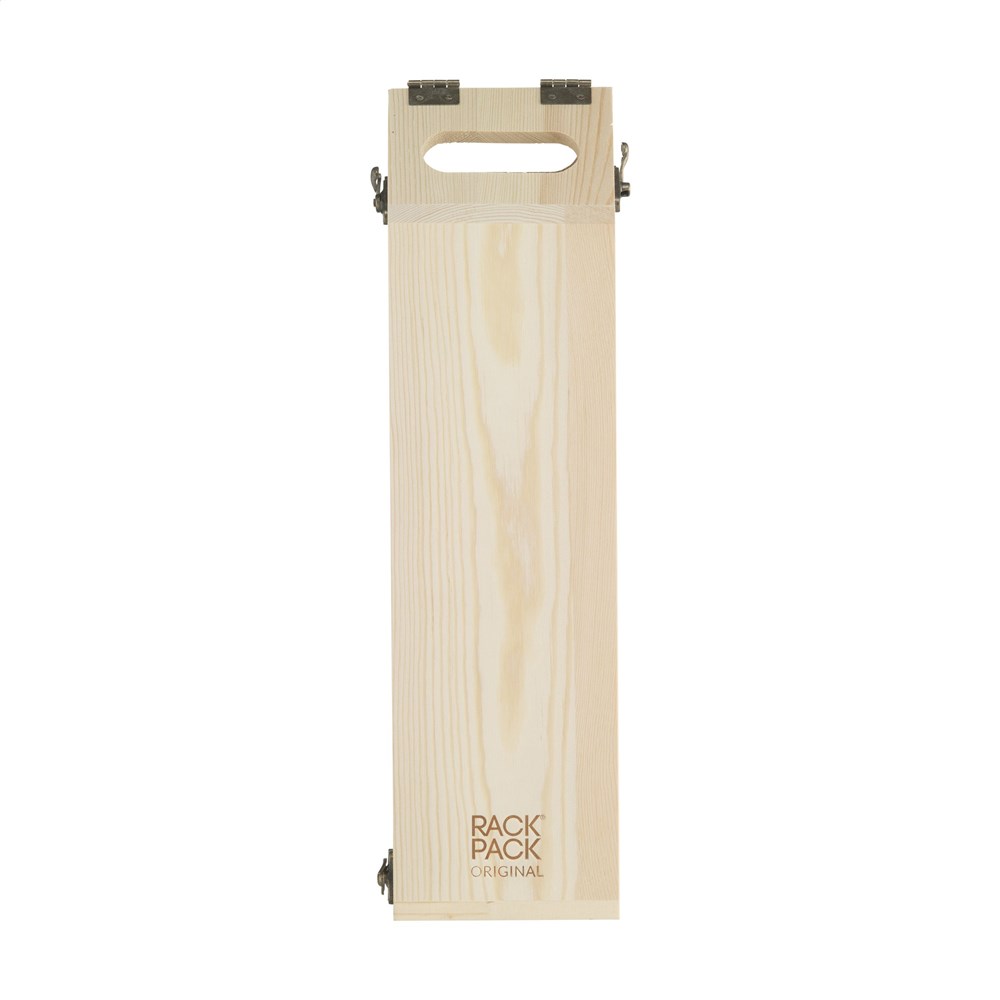 Rackpack Original: Weinkiste und Weinregal in einem. Rackpack ist eine hölzerne Geschenkbox für eine Flasche Wein, die sich in ein Weinlagerregal verwandelt. Mit dem Rackpack hebt sich Ihre Flasche nicht nur von anderen Hostessengeschenken ab, sondern lässt sich auch durch einfaches Drehen an einigen Scharnieren von einem Träger in ein hölzernes Weinregal verwandeln. Es kann auf verschiedene Weise konfiguriert werden, um drei, sechs oder sogar 12 Flaschen Wein zu lagern. Rackpack: eine Wein-Geschenkbox aus FSC 100% zertifiziertes Holz mit einem neuen zweiten Leben! • geeignet für eine Flasche Wein • 8-10 mm FSC 100% zertifiziertes Kiefernholz • Wein nicht inklusive. Verpackt pro Stück.