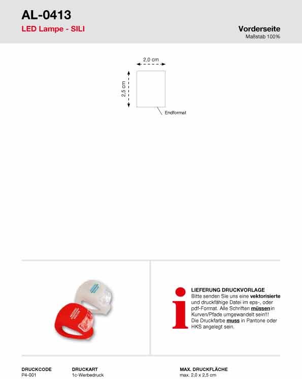 Unsere LED-Lampe SILI aus Silikon gibt es in sechs Grundfarben und ist einfarbig bedruckbar. Sie ist mit zwei weiß leuchtenden LEDs ausgestattet. Diese können als Dauerlicht, Blinklicht schnell oder Blicklicht langsam genutzt werden. Das dehnbare Material macht es Ihnen leicht die Lampe zu montieren. Der Einsatzbereich ist Ihnen überlassen und kennt keine Grenzen.