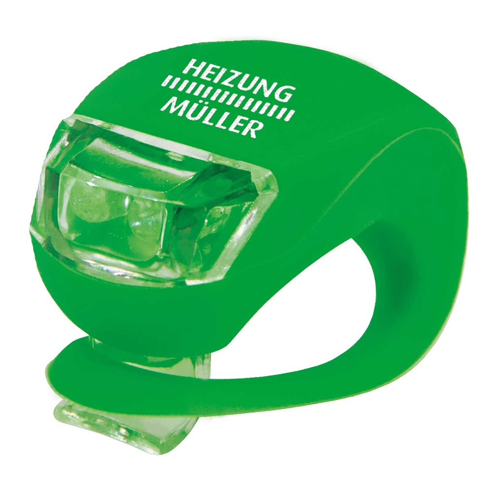 Unsere LED-Lampe SILI aus Silikon gibt es in sechs Grundfarben und ist einfarbig bedruckbar. Sie ist mit zwei weiß leuchtenden LEDs ausgestattet. Diese können als Dauerlicht, Blinklicht schnell oder Blicklicht langsam genutzt werden. Das dehnbare Material macht es Ihnen leicht die Lampe zu montieren. Der Einsatzbereich ist Ihnen überlassen und kennt keine Grenzen.