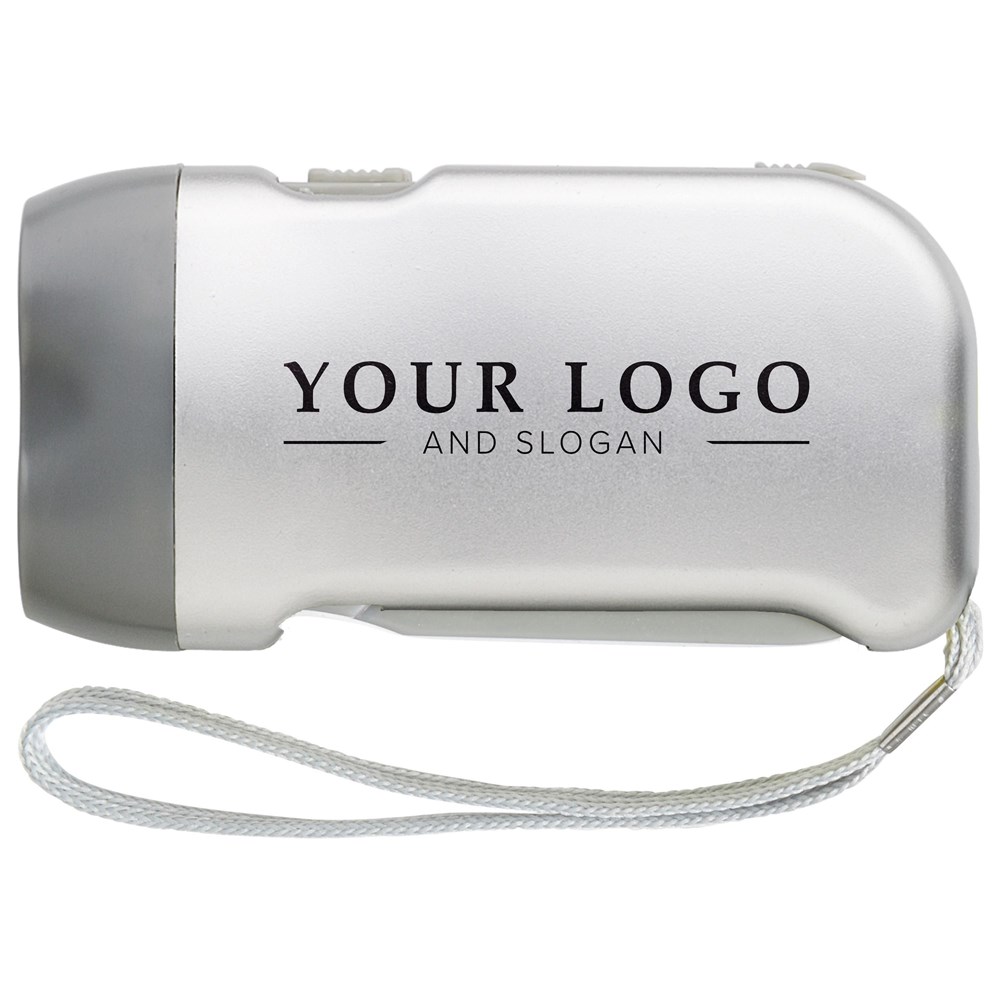 LED-Dynamotaschenlampe aus Kunststoff, mit Handschlaufe.