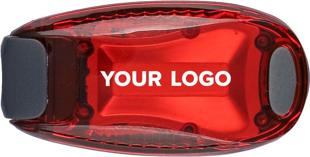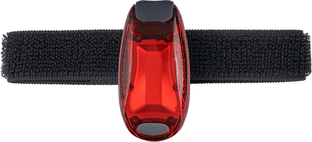 Sicherheitslicht mit zwei Einstellungen: konstant und blinkend, mit Befestigungsclip und Klettverschluss um das Licht zu befestigen.
