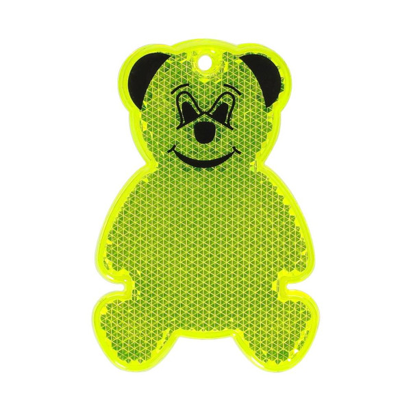 Reflektor in Form eines Bärs. Mit Öse und Schnur. Inklusive Konturendruck (Anstelle des Konturendrucks ist auch ein einfarbiger Kundendruck möglich). Bei diesem Artikel handelt es sich um einen reflektierenden Werbeanhänger.