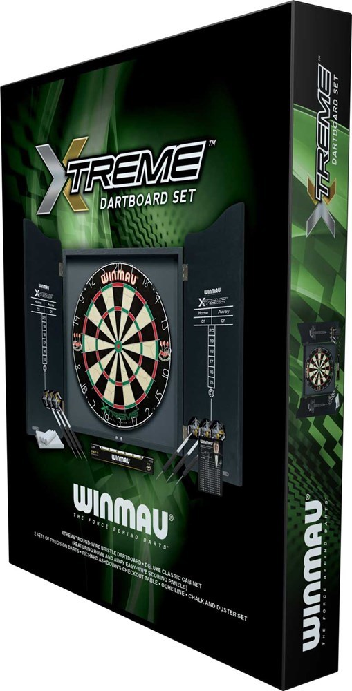 Unsere BLACK BOX ist ein hochwertiges Profi-Dartboard des weltweit führenden Herstellers Winmau. Es erfült alle Turnier Voraussetzungen der "British Dart Organisation". Es besteht aus einem hochwertigen verschließbarem schwarzem Cabinet mit Holzmaserung, welches veredelt werden kann. Enthalten sind in diesem Set: Abwischbare Score Einteilung an den ausgeklappten Türen, zwei 3er-Sets Dartpfeile, selbstklebende Abwurflinie, Checkout Karte, Kreidestift,Tuch, Spielregelung und Aufhängelasche aus Metall auf der Rückseite des Cabinet. Eine Werbeanbringung ist im 4c Digitaldruck auf den beiden Flügeltüren außen möglich. Weitere Veredelungen sind auf Anfrage möglich.