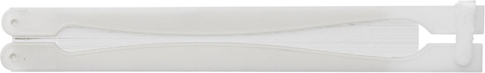 Fächer aus Kunststoff, faltbar, mit weißem Griff.
