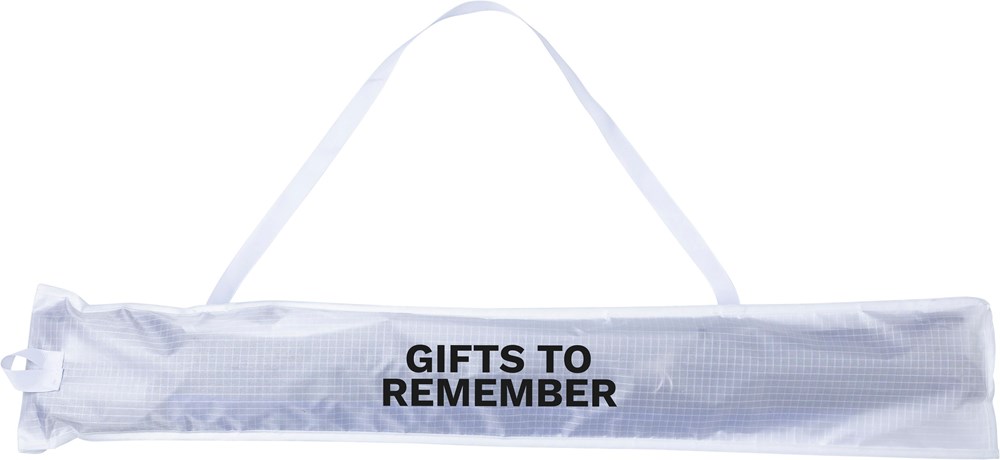 Drachen aus Ripstop-Polyester 210T mit einer Breite von 160 cm und zwei Kunststoffgriffen. Einzeln verpackt in einer Tasche mit verstellbarem Tragegurt.