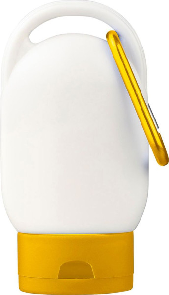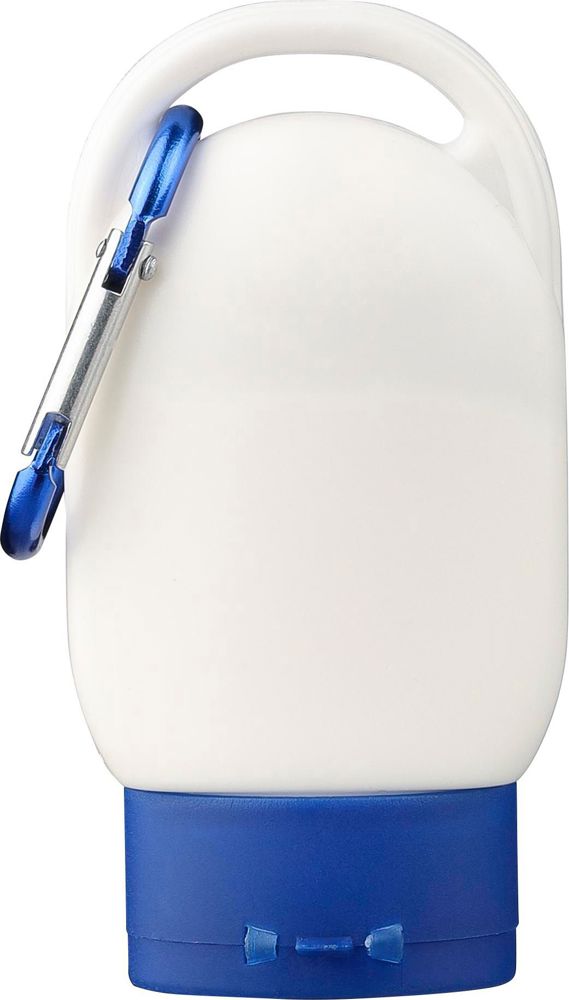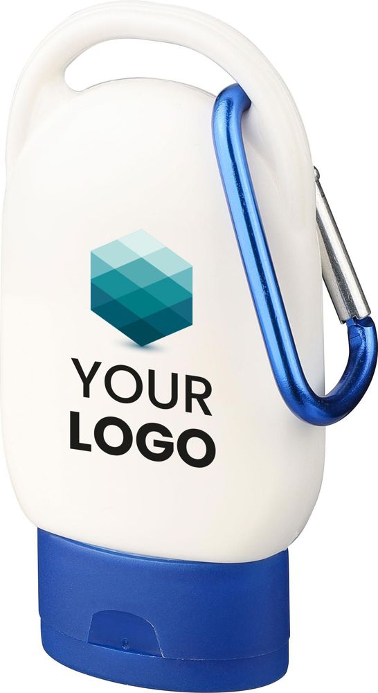 Sonnenschutzlotion mit Lichtschutzfaktor 30 in einer 30-ml-Tube. Sie hat eine farbige Kappe und einen passenden Karabinerhaken zur einfachen Befestigung. Auf der Rückseite sind die Inhaltsstoffe und das Mindesthaltbarkeitsdatum angegeben. Haltbarkeit: 2 Jahre.