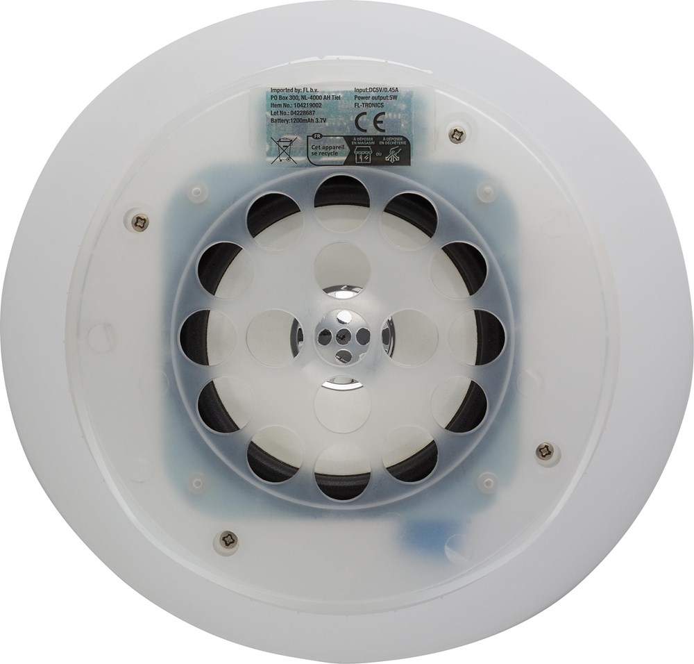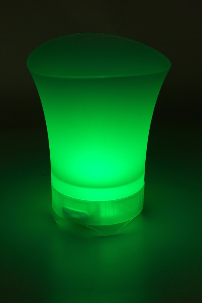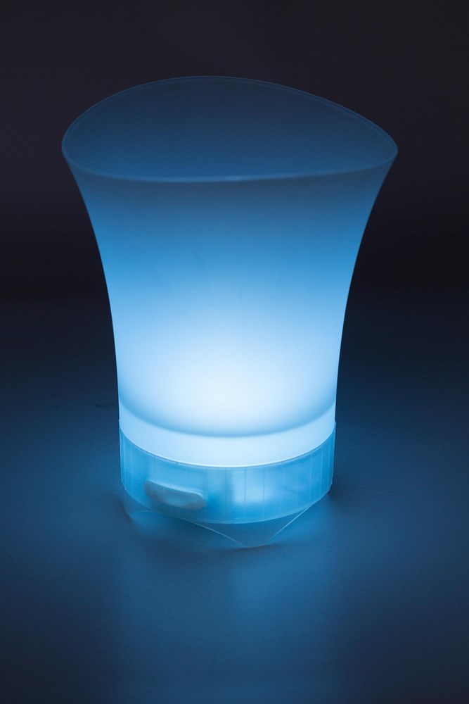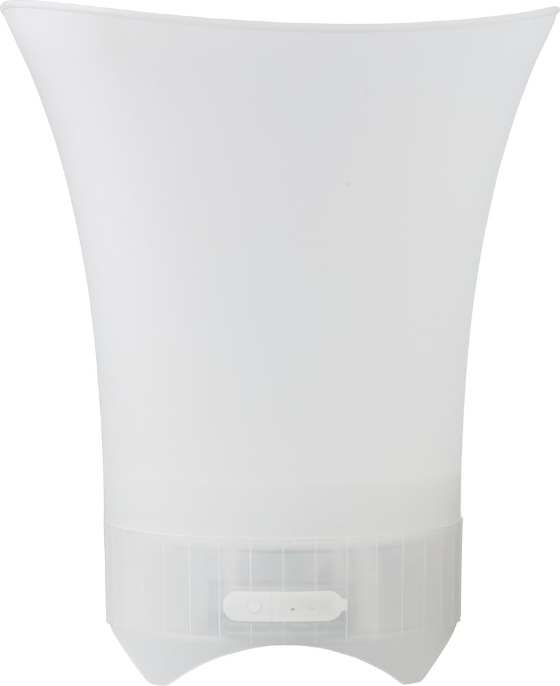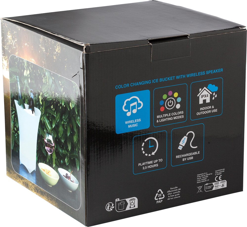 ABS-Eiskübel mit Lautsprecher. Farbwechselnde Lichter im Boden und drahtlose Technologie. 1200 mAh-Akku. Der Lautsprecher hat eine Leistung von 5 Watt. Pro Stück in einer farbigen Geschenkbox verpackt.