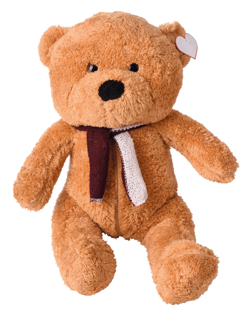 Großer Plüsch-Bär RICO: mit weichem Fell und zweifarbigem Schal, mit Herz zum Bedrucken - Made in Europe
